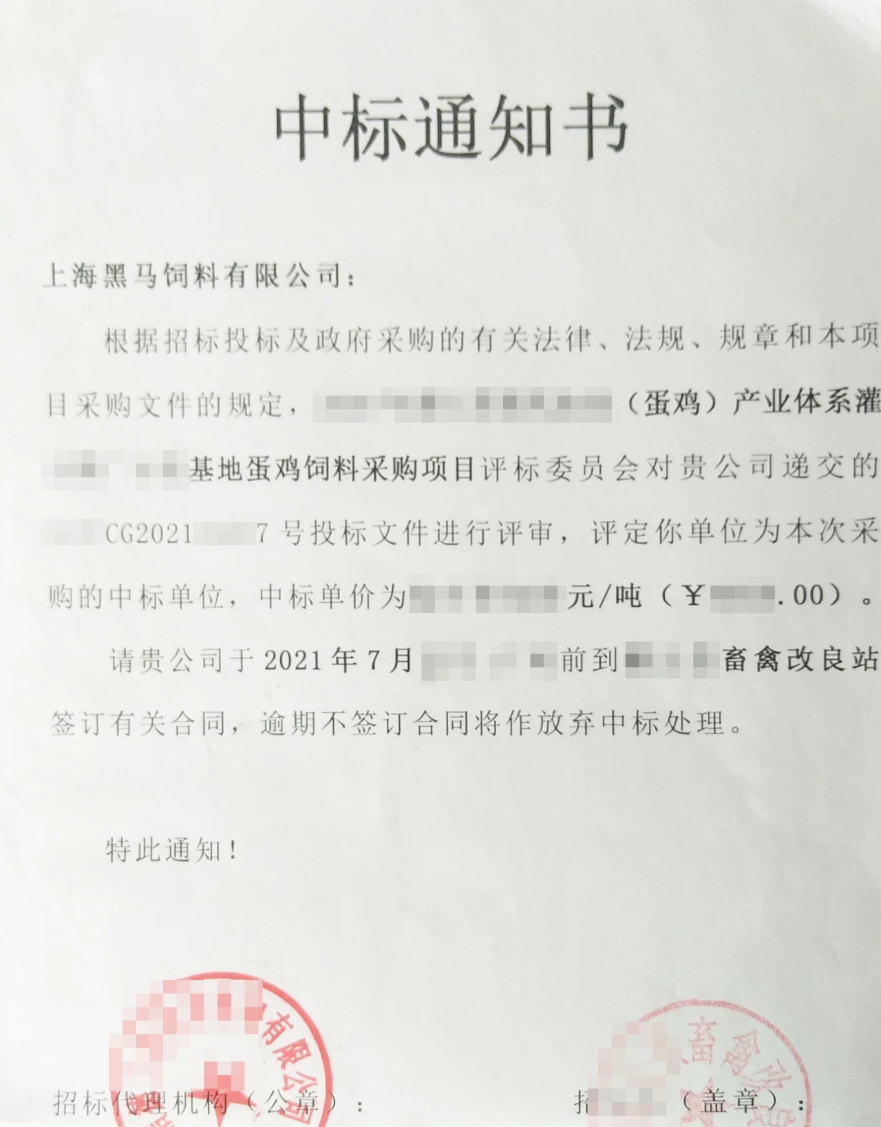 ?近日,我司參加了江蘇現代農業產業體系推廣示范基地飼料采購項目招投標活動,經過數輪激烈的競爭,我司成功中標該項目。