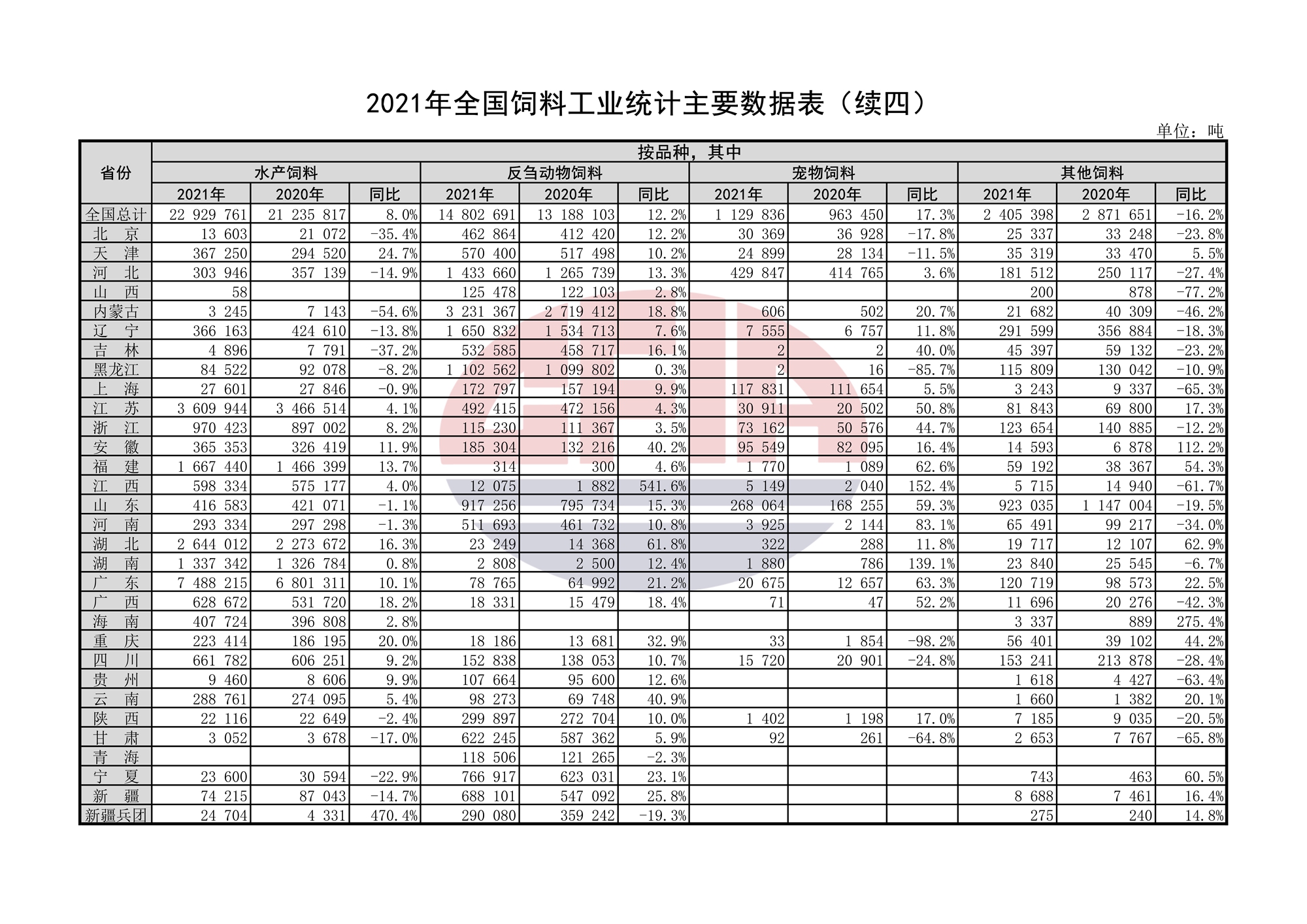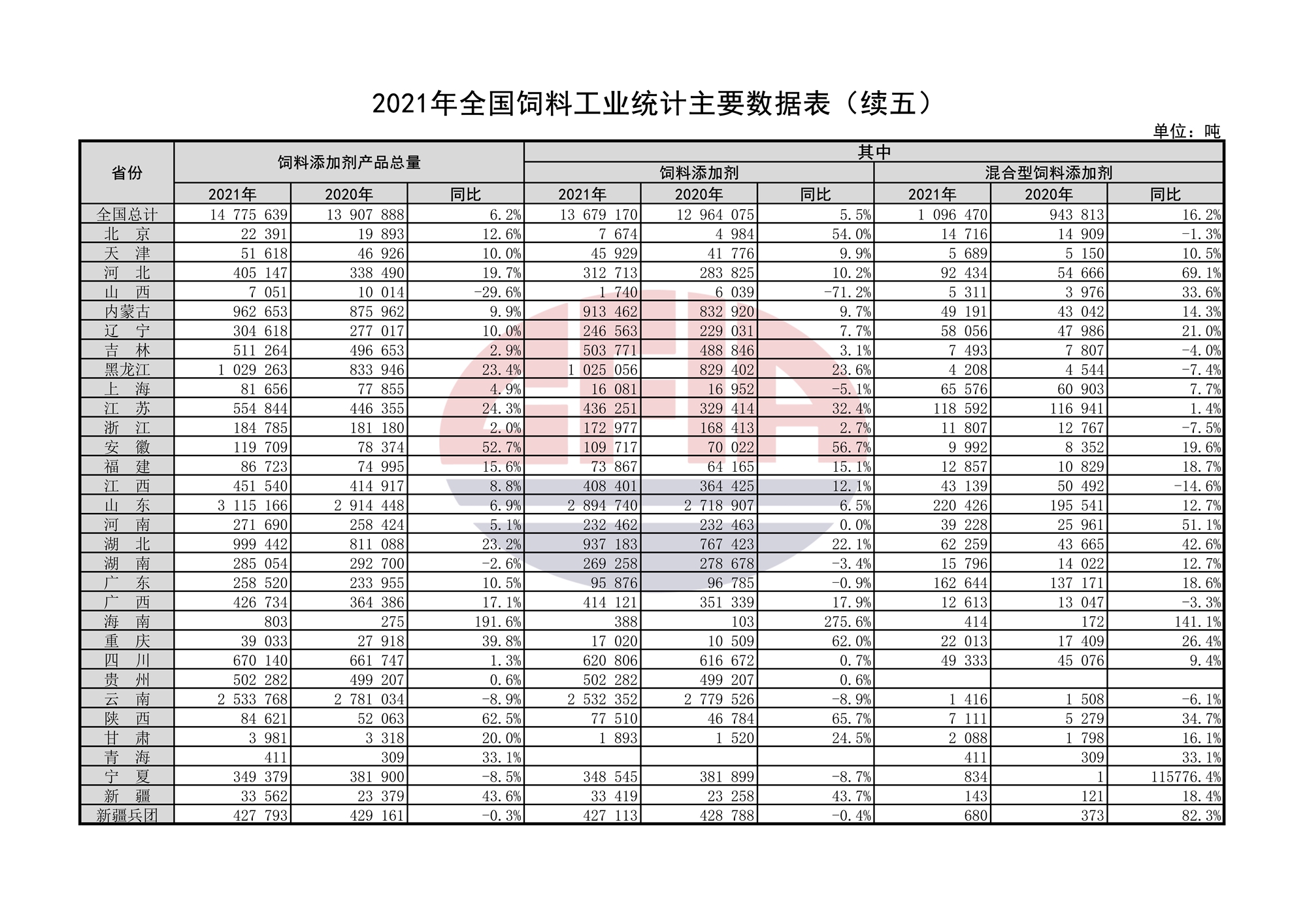 2021年全國(guó)飼料工業(yè)統(tǒng)計(jì)主要數(shù)據(jù)表