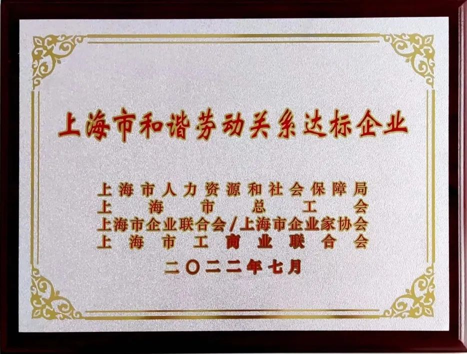 【喜報】熱烈祝賀我司榮獲“上海市和諧勞動關(guān)系達標(biāo)企業(yè)”稱號