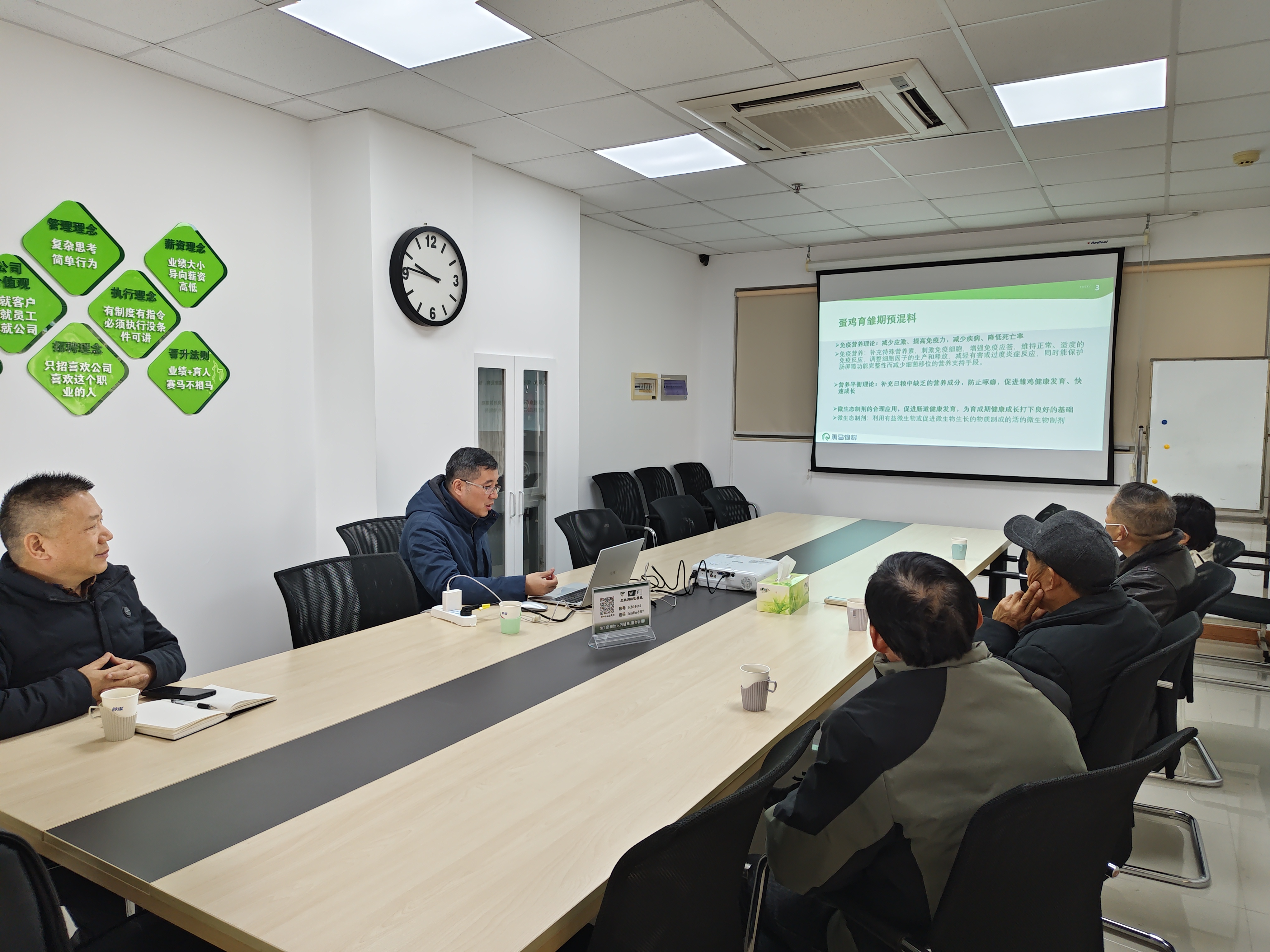 我司副總經(jīng)理卞總向葉總一行介紹了我司高性能蛋雞預混料系列產(chǎn)品,從產(chǎn)品的設(shè)計理念到產(chǎn)品特色,做了詳細講解。并解答了大家在蛋雞養(yǎng)殖過程中遇到的各種問題。